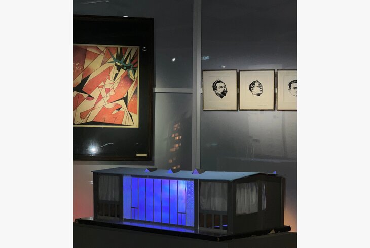 Макет цирка, который мерцает и переливается. По задумке, подсветка должна была реагировать на погоду: например, от силы ветра менялась динамичность освещения, а от интенсивности дождя — цвет. Экспонат очень медитативный, и около него можно простоять долго, рассматривая переливы из синего в фиолетовый на здании.
