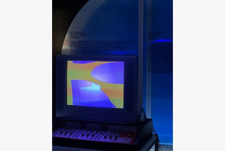 Она появилась в середине 1970-х — в эпоху, когда телевизоры становились обычной частью советского быта. Художники использовали этот огромный компьютер для создания цифровых работ прямо на его экране. На нем можно изменять световые образы, например цвет, яркость или масштаб. Если художники пользовались компьютером, то выбирали между беззвучным и автоматическим режимом, где картинки менялись в такт музыке. На выставке этого сделать нельзя, зато можно потыкать и покрутить кнопки установки.