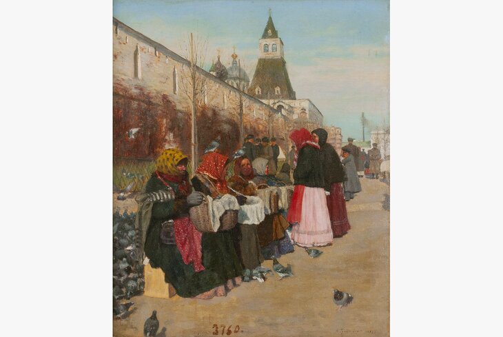 Николай Грандковский. Корм голубей в Китай-городе. 1892. Саратовский государственный художественный музей имени А. Н. Радищева