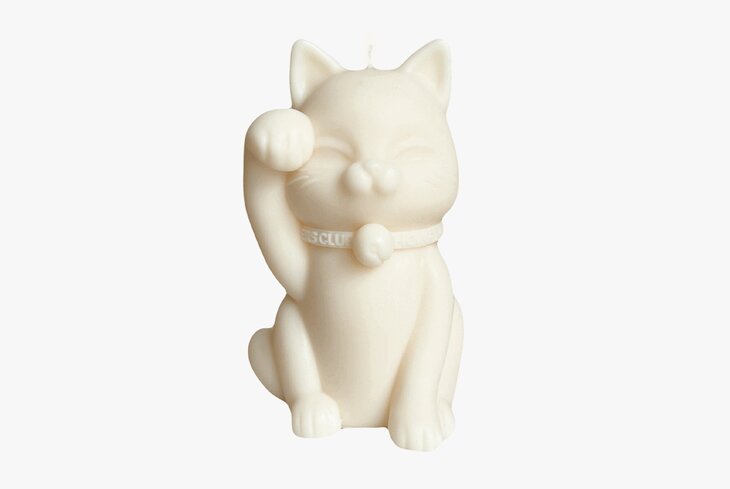 Японский талисман-кот из соевого воска на удачу. Свечка довольно крупная — 13 сантиметров в высоту, так что гореть будет долго.