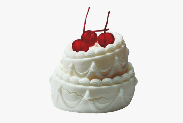 Симпатичный тортик с полупрозрачными вишнями из гелевого воска. Эта свеча — однозначный рекордсмен по горению: мерцать будет целых 20 часов.