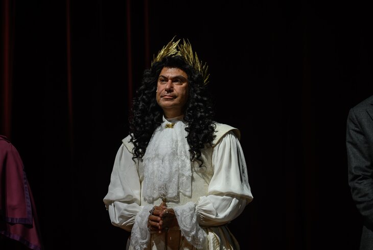 Трагифарс по пьесе Михаила Булгакова, где Хабенский исполняет роль драматурга Жан-Батиста Мольера, а Цискаридзе — короля Людовика XIV. Для такой громкой премьеры сценограф Николай Симонов сделал огромные головы младенцев, а режиссер Юрий Квятковский соединил три эпохи: Францию XVIII века, советское время и наши дни.