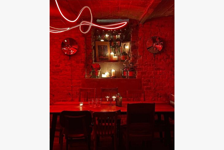 Камерный бар, где большинство столиков рассчитаны только на двух человек. Чтобы прийти большой компанией, бронировать стоит заранее. А после заказывать паштет из лосося (850 рублей), пармезан с трюфельным медом (790 рублей) и батат фри (850 рублей).