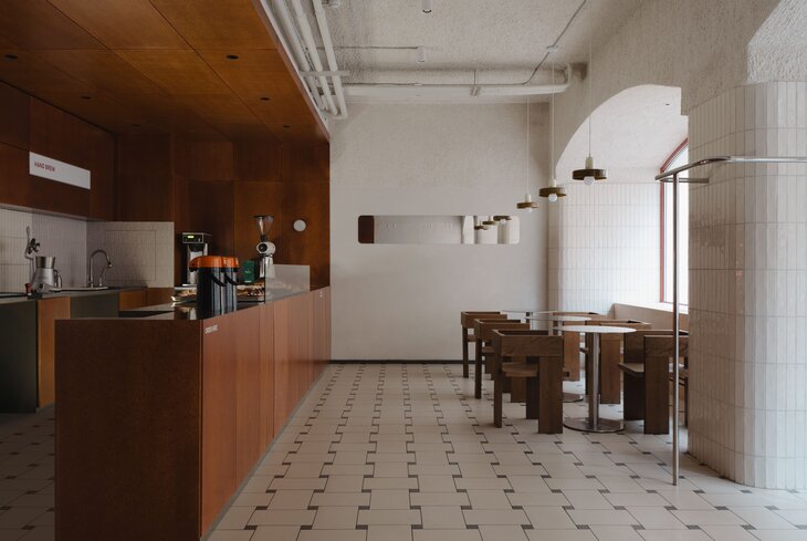 Крупная сеть кофеен с минималистичным дизайном. Сюда — за различными спешелти-напитками вроде рафа «Османтус» (520 рублей), латте «Пало санто» (520 рублей) или матчи инея (520 рублей). Не уходите без хрустящей выпечки: на прилавке — бабки (от 420 рублей), кексы (от 400 рублей) и мадлены (240 рублей).