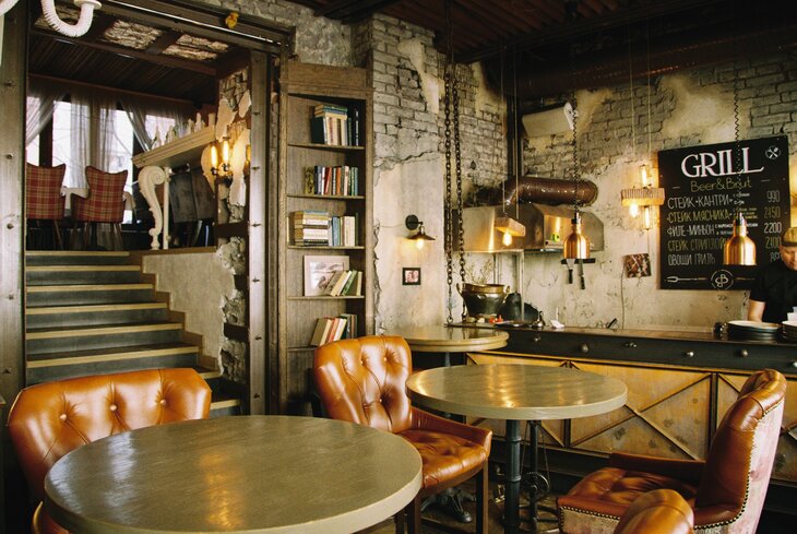 Гастропаб с хулиганским наполнением: столом с ножками вверх, пианино вместо раковины в уборной и целой стеной, на которую закрепили часы, самовары и кучу других странных вещиц. Меню сделали не таким дерзким, а, скорее, изысканным. В нем утиное филе приносят с пюре из батата и облепихой (1 050 рублей), щавелевый суп с говяжьей щекой (820 рублей), а кебаб из креветок — с обжаренным авокадо (720 рублей).