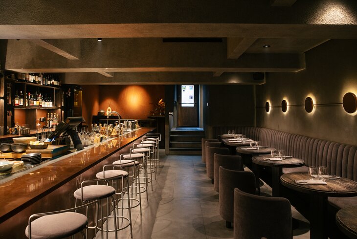 Спрятанный во дворе бар со стильным темным интерьером и двумя залами. В первом — широкая барная стойка и посадка на диванах, а во втором — открытая кухня и деревянные столы. Меню — калька с аутентичных блюд Перу плюс авторский взгляд. Так, например, готовят сибас с имбирем и кокосовым йогуртом (950 рублей), татаки из тунца с малиной (950 рублей) и гребешки с пломбиром юдзу (1 500 рублей).