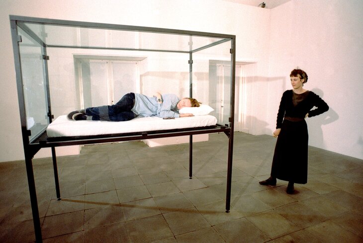 Это бесстрашие перед экспериментами распространяется и на ее арт-проекты: в разные годы она проводила перформансы The Maybe, где спала в стеклянном коробе в музеях, а также «Гардероб», где работала гардеробщицей, исследуя уязвимость и скоротечность моды (кстати, посвятила она их своему учителю Дереку Джармену).