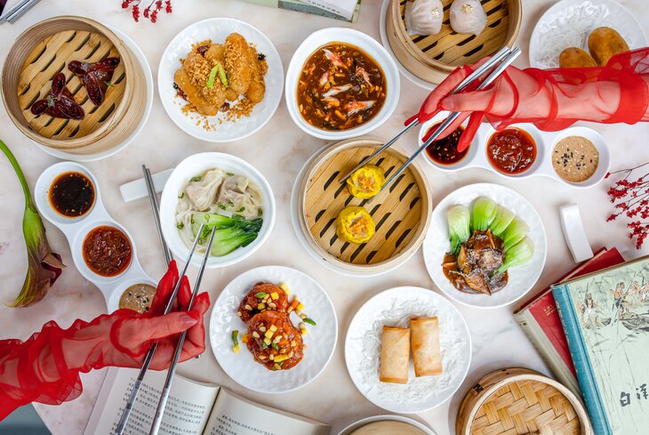 Для фанатов Азии — бранч в гонконгском стиле на 90-м этаже небоскреба «Москва-Сити». Из 20 позиций меню придется выбрать только десять. В разделе супов попробуйте остро-кислый либо тот, что со стеклянной лапшой. Из основного берите жареный рис с ананасами по-тайски и, конечно, димсамы. Есть со сморчками, побегами бамбука и острой говядиной.