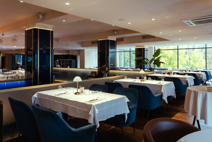 Начинаем с ресторана в гостинице «Украина» с роскошным видом на Москву. Возглавил его бренд-шеф Джузеппе Дави, который также готовит в Butler. Упор сделали на кухню разных регионов Италии от Валь-д’Аоста до Сицилии. Берите здесь равиоли с сыром молитерно и цукини (1 800 рублей) или трио тартаров (3 300 рублей).
