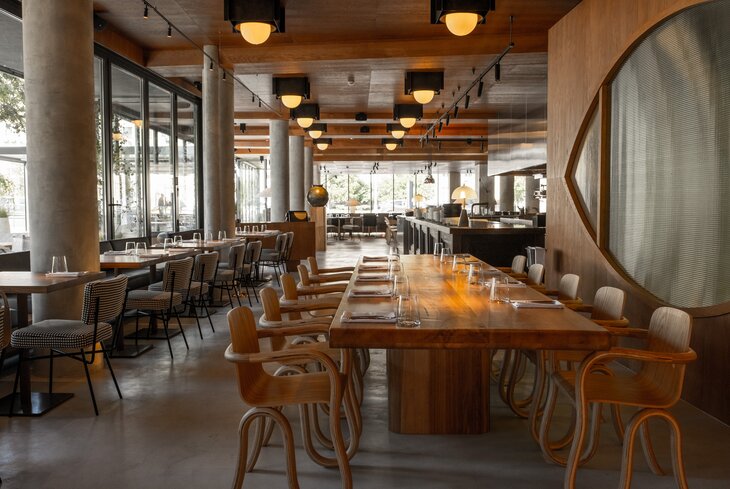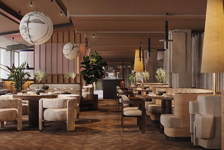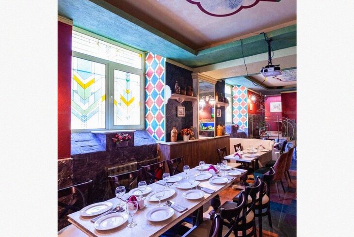 Главная фишка интерьера — открытая кухня с мангалом, дровяными печами и саджем. Пространство дополняют сводчатые потолки, марокканская мозаика и узорчатые окна. В этом ресторане собрали кухню сразу нескольких стран — Израиля, Марокко, Ливана и Сирии. Основа меню — 17 видов мезе: от ливанского хумуса за 460 рублей до мутабаля с гранатом за 670 рублей. Особое место занимают блюда на гриле — например, печень с курдюком (990 рублей) или люля-кебаб из креветок (1 250 рублей).