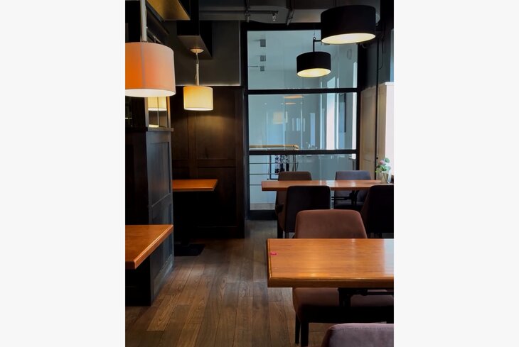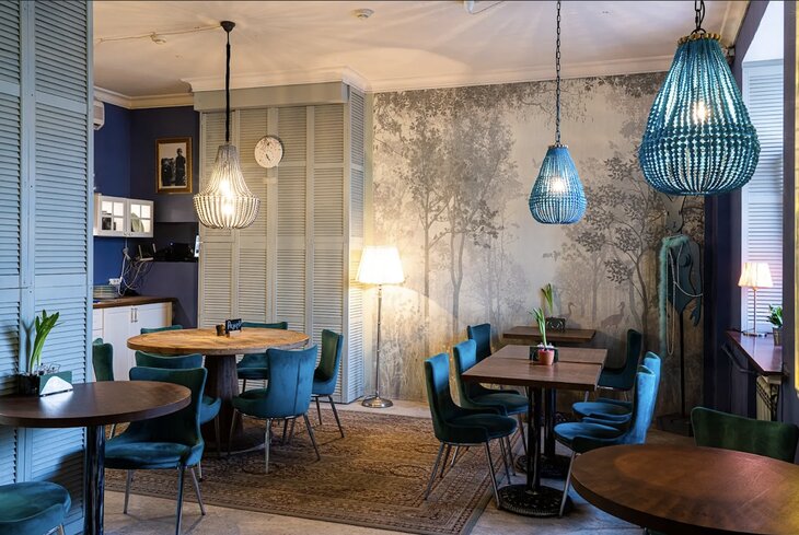 И снова сворачиваем с проспекта и попадаем в камерный ресторан с итальянскими блюдами и домашней пастой. Внутри все очень минималистично: простые стильные стулья и столы с акцентными люстрами. Пробуйте здесь фетучини с морепродуктами (1 400 рублей), равиоли с лососем (1 350 рублей) или тальолини с крабом (1 200 рублей).