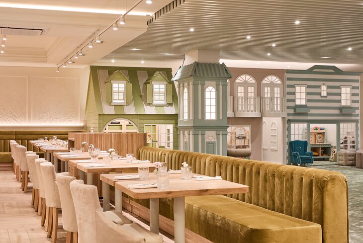 Светлый просторный семейный ресторан с детскими игровыми домиками. Подают тут домашнюю еду — берите суп с фрикадельками (690 рублей), зеленую гречку с пармезаном (750 рублей) и хумус с домашней лепешкой (850 рублей).