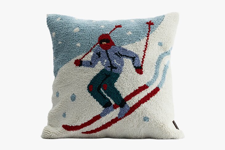 Декоративная наволочка из вискозы, хлопка и полиэстера подойдет почти для любого интерьера. На квадрате 45 на 45 сантиметров — несущийся по снегу лыжник.