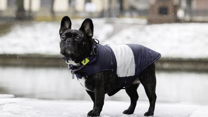 Первый снег для питомцев москвичей не помеха. Они уже вовсю гуляют в костюмчиках, свитерах и дождевиках. Посмотрите, какие милые.
