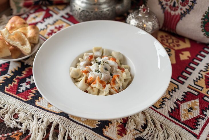 В турецкий ресторан идите за классикой в авторском исполнении. Традиционные манты делают очень маленькими — как пельмени. Внутрь кладут говядину с луком.