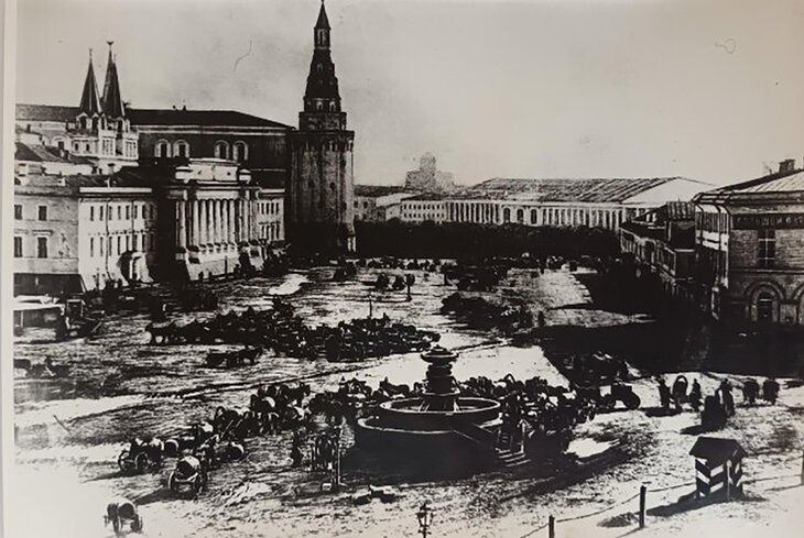 Начали перестраивать Неглинку, открыли ее своды. Пришлось на площади забить несколько свай.
