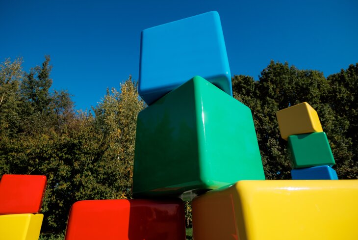 На выходе из Центрального парка гостей фестиваля встречает скульптурная композиция в виде огромных разноцветных кубиков от Аси Заславской, Андрея Астахова и Софьи Добычиной. На этом объекте каждый сможет почувствовать себя ребенком.
