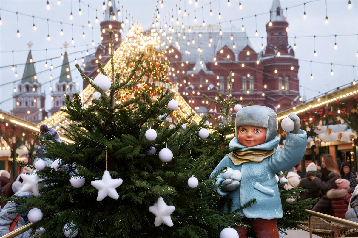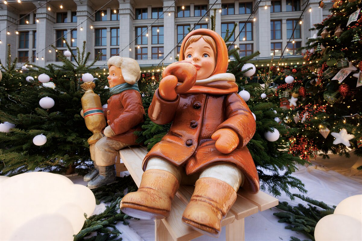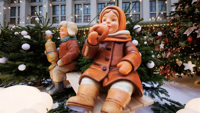 Шарами, гирляндами и даже цветами уже вовсю украсили центр Москвы. А еще там появились новогодние фигурки, снеговики и, конечно, елки. Скорее отправляйтесь делать сказочные фотографии!