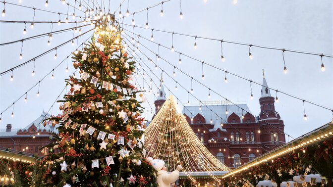 Новогодняя Москва: посмотрите, как украсили улицы города шарами, огнями и цветами