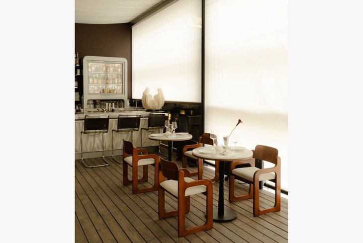 Чтобы в этом убедиться, берите гребешка с трюфелем и панакотой из укропа (950 рублей), маринованные сардины с пряным изюмом, мисо-маслом и хрустящим багетом (1 800 рублей) и ростбиф с соусом из мидий (1 800 рублей), на десерт — террин из айвы с соусом из водорослей (1 400 рублей). В качестве горячего предлагается просто, без выкрутасов зажарить пагра (1 900 рублей за 100 граммов) или рыбу-попугая (1 100 рублей за 100 граммов). А не перегруженный деталями интерьер с большими окнами и повторяющимся в декоре мотивом парусов дополнит иллюзию мгновенной телепортации в летнюю Ниццу.