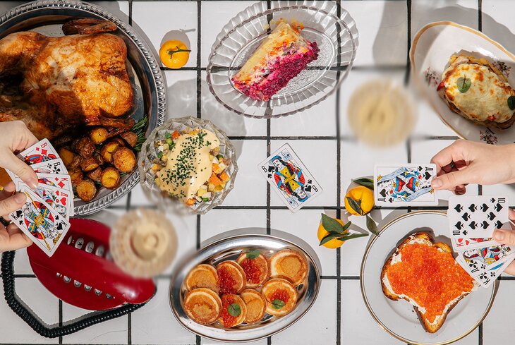 Чуррос с икрой, крабовый салат с грушей и «Гринч-бургеры»: 14 новогодних меню из ресторанов Москвы