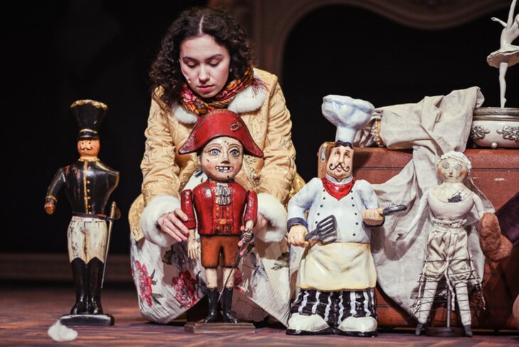 Спектакль предлагает альтернативную, очень душевную новогоднюю сказку без Деда Мороза и других привычных персонажей. Мальчик Дружок и его родственница, несмотря на бедность, каждый год пекут пироги для незнакомцев, чтобы создать маленькое чудо для всех. На сцене оживают простые предметы, а тепло семейных традиций и ожидание праздника превращаются в настоящую магию.
