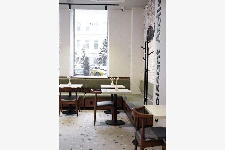 Третья кофейня сети на Большой Дмитровке. Интерьер в фирменной цветовой гамме — приглушенный зеленый, белый кирпич и текстурная штукатурка — дополнили панорамные окна с видом на исторический центр Москвы. Меню в новой локации идентично другим проектам, основной акцент сделан на круассаны: от сытных «Четыре сыра» (990 рублей) и «Лосось юдзу» (1190 рублей) до десертных «Карамелла» с яблоками и корицей (690 рублей) и «Черри чиз» с вишней (750 рублей).