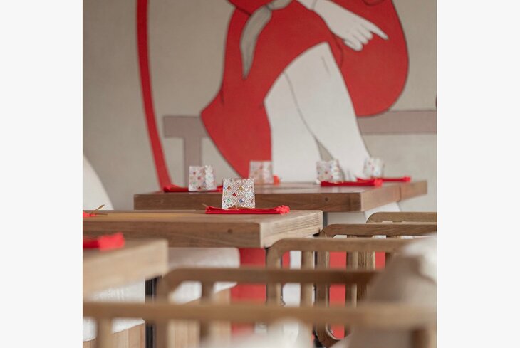 Новый ресторан от создателей Rizz снова про русскую кухню. Интонация у «Притчи» эпическая: проект метит в то, чтобы протянуть эмоциональную и гастрономическую нить между прошлым и будущим. В интерьере эту тему обыгрывают декоративные панели с пикселями и окна с резными наличниками и ставнями-экранами.