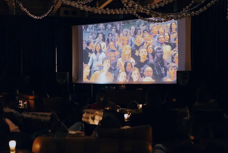Здесь нет фиксированного кинодня, зато показы проходят каждую неделю, а по праздникам устраивают тематические марафоны. Недавно, например, смотрели «Клуб убийств по четвергам» о буднях обитателей элитного дома престарелых.