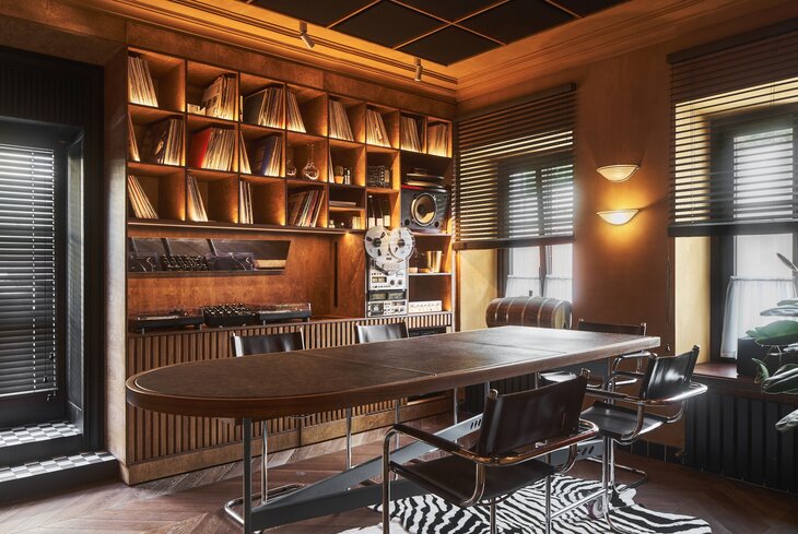 Под одной крышей и бар, и паб, и ресторан, и караоке-клуб. Так что готовьтесь сидеть в расслабленном брутальном интерьере с артом и мягким освещением. Для компаний тут придумали несколько уединенных зон. Из еды берите хрустящие баклажаны (610 рублей) и теплый салат с халуми (610 рублей), а еще приходите на поздние завтраки — они тут до 16:00.