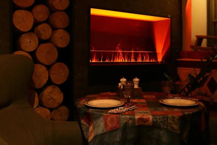 В интерьере — массивные деревянные столы, широкие скамьи, текстиль с орнаментом и старинные предметы быта. Особенно выделяется каменная ниша с разными кувшинами и горшками. Кроме хинкали (от 110 рублей), стоит попробовать суп чанахи (640 рублей), лобио (520 рублей) и кучмачи — тушеные свиные потрошки (590 рублей).
