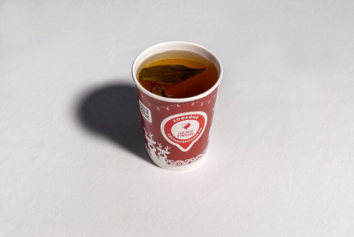 В стакане — купаж белого чая бай-му-дань и черного с бергамотом.