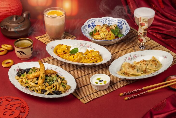 Блины и удон-вок: 3 сета из московских ресторанов, где объединили Масленицу и китайский Новый год