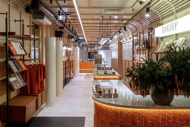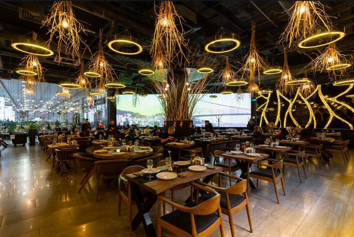Новая точка сети появилась на Арбате в конце 2025 года. Интерьер старались выдержать в грузинской стилистике: под потолком повесили около 20 плетеных люстр и добавили живые растения. Некоторые блюда приносят в глиняной посуде, например долму (545 рублей), салат с говядиной (515 рублей) и харчо (395 рублей).