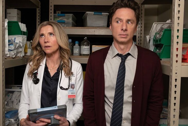 Пилот снял сам Брафф, и чувствуется, что ему было не все равно: первая серия начинается с забавного экивока сериалу «Питт» (который иронично выходит на том же ABC), а в обновленной заставке под все тот же Superman Джей-Ди свайпом перекидывает рентгеновский снимок с планшета на монитор. Двадцать пять лет в одном жесте — и это, пожалуй, ровно та степень остроумия, на которую способен сериал в нынешнем виде. Потому что с остроумием тут в целом все в порядке, а вот с чем-то большим — пока вопрос. Актеры возвращаются в свои роли с пугающей легкостью, будто 16 лет не было, будто вчера еще бегали по коридорам. Фэйсон по-настоящему трогает в сценах, где Тёрк пытается не признаваться себе в выгорании. Чок, всегда блиставшая в физической комедии, неожиданно берет драмой. А Макгинли в пилоте выдает такой монолог, что хочется встать и поаплодировать — и тут же расстроиться, потому что после первой серии он из шоу практически исчезает.
