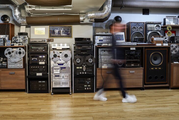 Прямо тут проходят музыкальные шоу, концерты и лекции о музыке. А в магазине продаются пластинки от рока и джаза до классики и советской эстрады. Есть и винтажная техника: проигрыватели, декодеры, акустика.