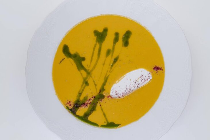 Постное меню в ресторане придумали вместе с маленькой церковной лавкой при храме Священномученика Антипы. В списке блюд — свекла с кокосово-трюфельной сметаной (650 рублей), батат с томатной сальсой (830 рублей), зеленая гречка с грибами (870 рублей) и морковный суп (590 рублей).