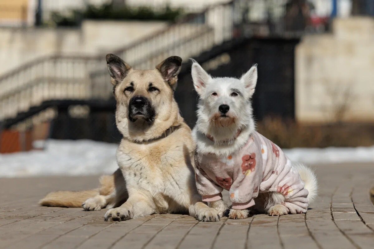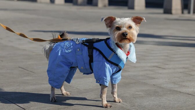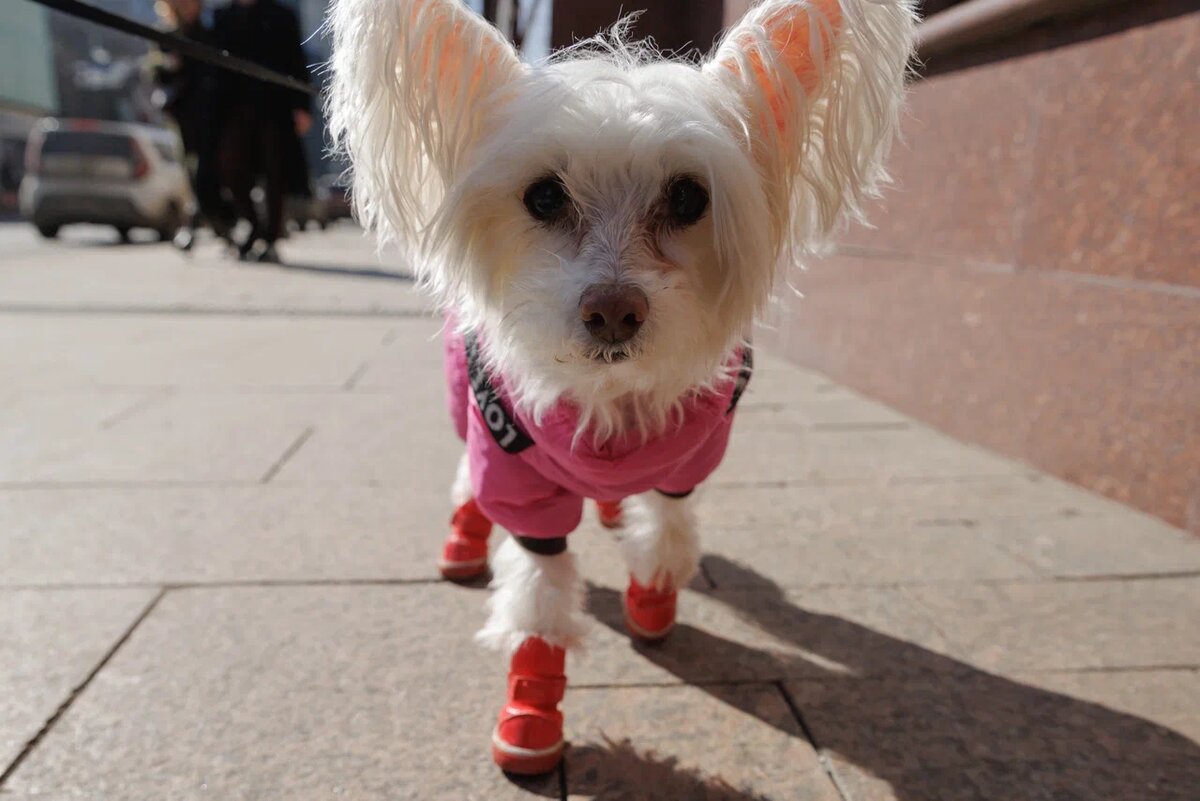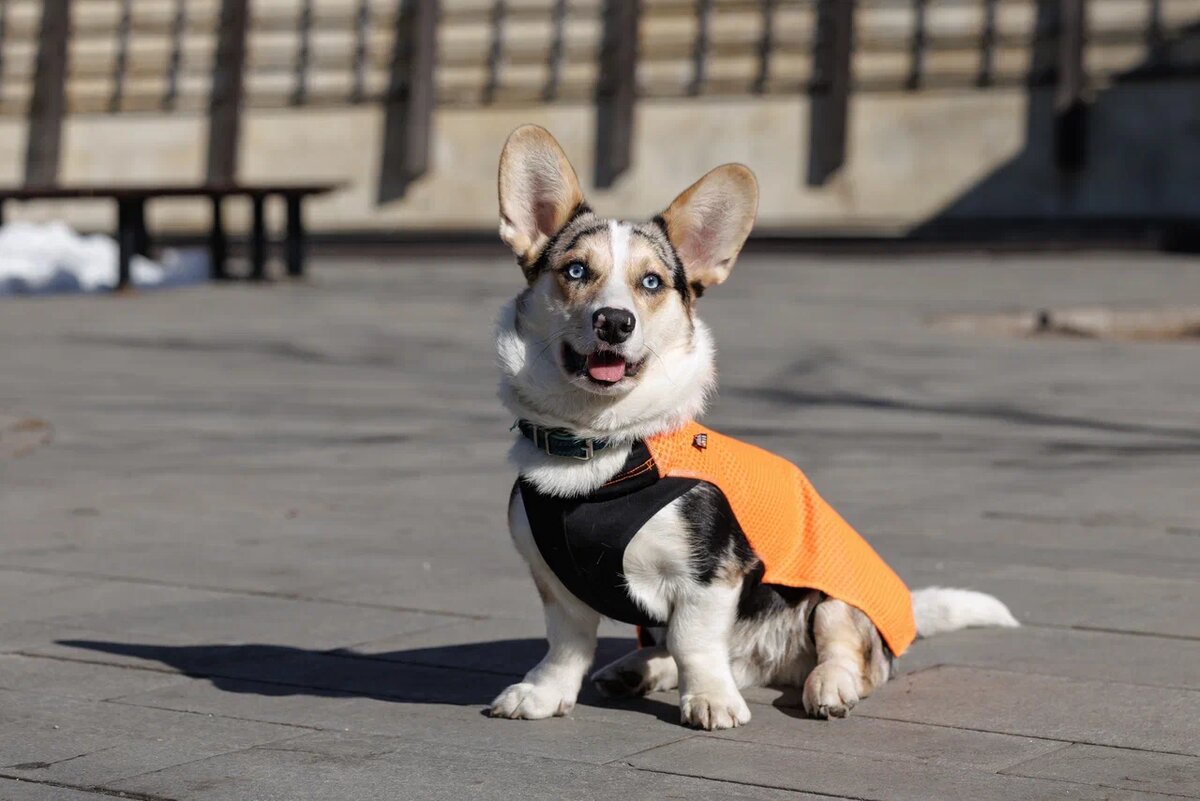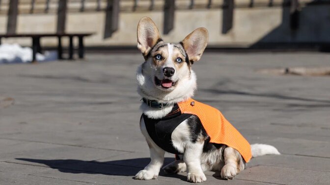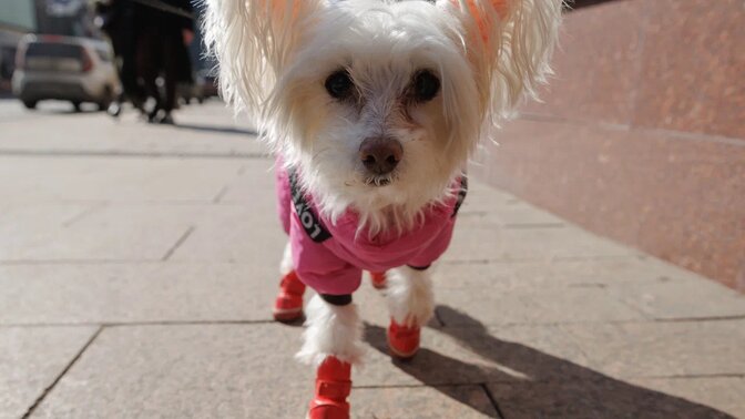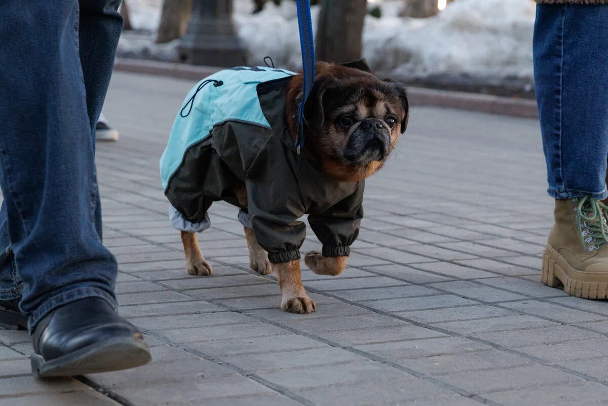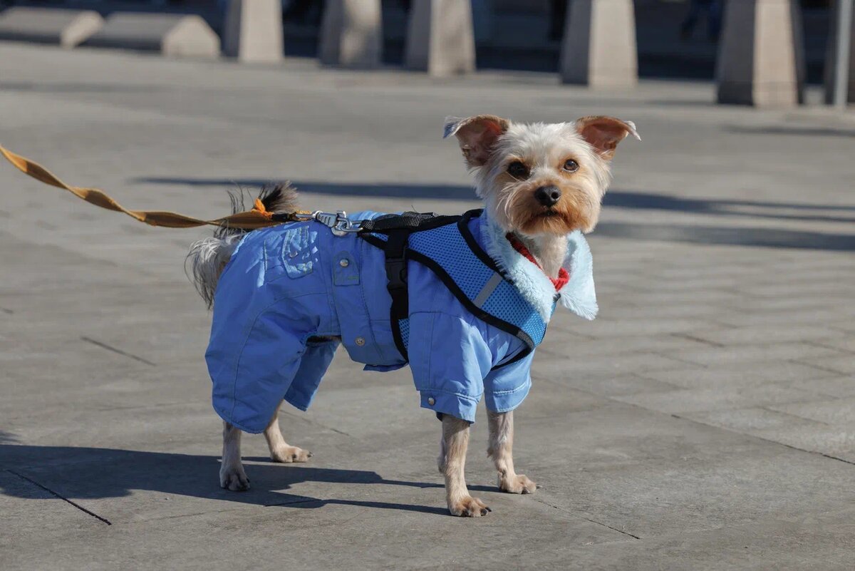 Солнечные ванны радуют не только москвичей, но и их питомцев. Четырехногие друзья уже вышли на прогулку в своих нарядных костюмчиках. Посмотрите, какая красота.