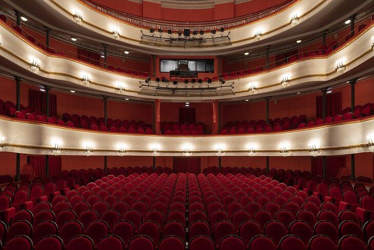 Артисты театра Роман Фомин и Кирилл Кусков проведут по закулисью Основной сцены, расскажут об истории здания, труппе и работе всех цехов. А еще вместе с ними сможете разглядеть зрительный зал с его центральной точки — прямо под люстрой.