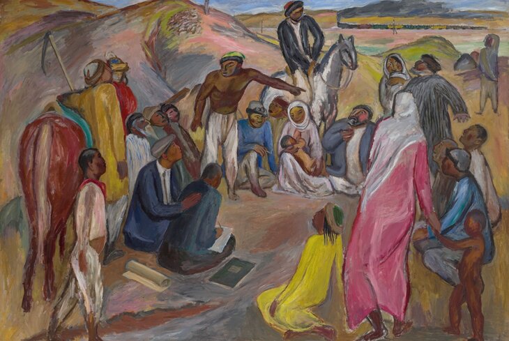 С. А. Чуйков. Собрание в ауле. Турксиб. 1929–1930. ГТГ