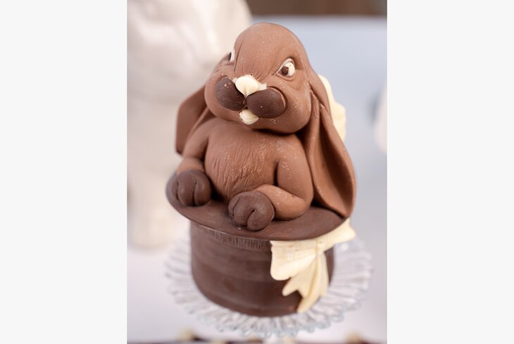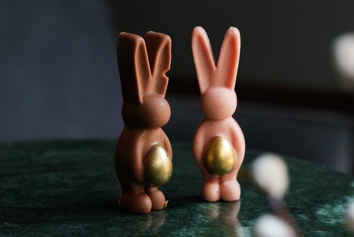 Милых зайчиков (350 рублей) в пекарне готовят из нескольких видов шоколада — молочного и карамельного, а также белого с малиновой пудрой.