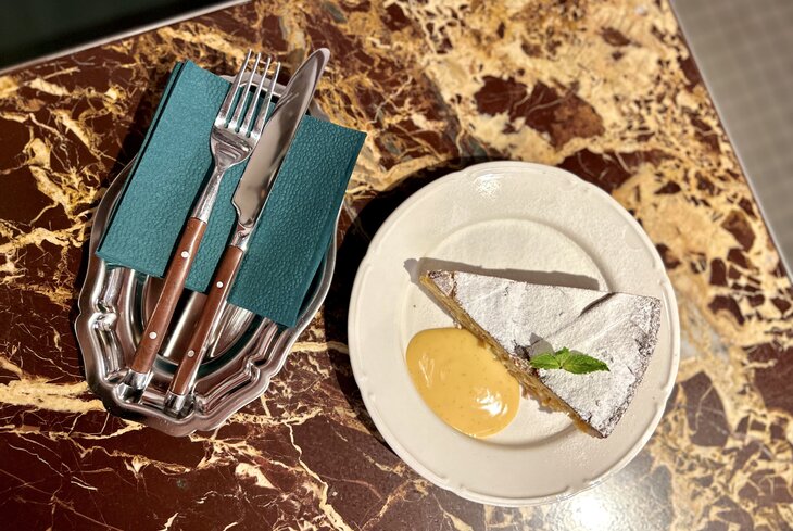 Вместо традиционного пышного кулича здесь можно попробовать неаполитанский пирог пастьера. Под хрупкой песочной корочкой — нежная рикотта и заварной крем с цукатами. Заказывать можно как целый пирог (2 500 рублей), так и один кусок (700 рублей).