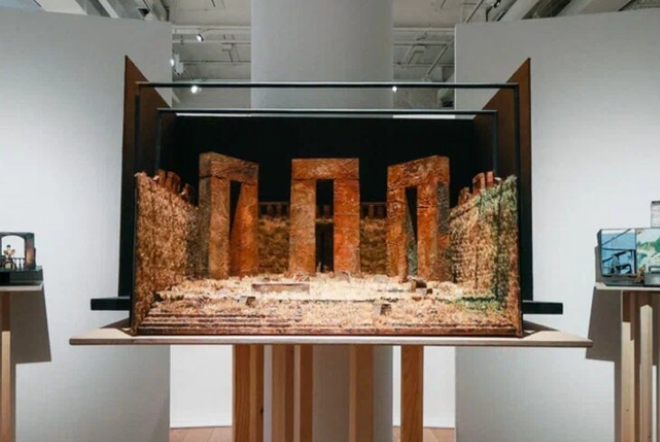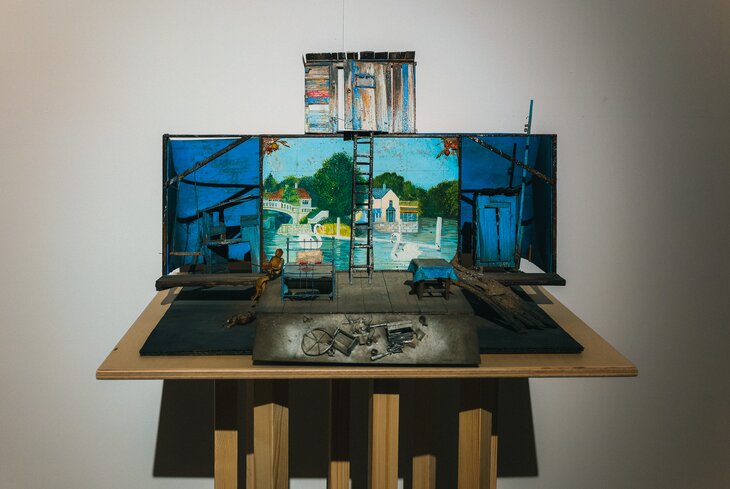 На выставке представили только два макета Боровского, так как остальные можно увидеть в постоянной экспозиции. «Аномалия» — вторая совместная постановка Галина и Боровского. Наброски из ржавого металла передают метафоричный язык и минималистичность сценографа. Материал, который использовал Боровский, становится символом распада старого мира и неустроенности нового.