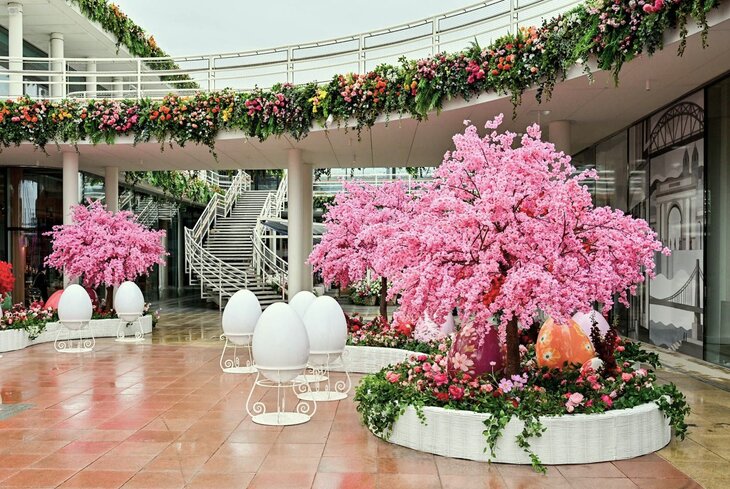 Обновленная Пушкинская набережная — одна из центральных локаций фестиваля. Рядом со свежими павильонами, которые напоминают круизные лайнеры, появились арки из живых цветов и огромные пасхальные яйца в человеческий рост! А еще до конца недели на прилавках можно выбрать гипсовые фигурки, изделия из фетра, шоперы и праздничные наклейки — все сделали вручную.