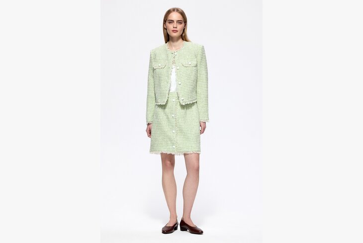 Романтичная коллекция с обилием воротничков, манжет и бантов, которые при этом смотрятся очень минималистично. Продолжается тренд на юбки плиссе (12 990 рублей) и объемные тренчи (32 990 рублей). Но есть и классика — твидовый костюм с юбкой в стиле Chanel (13 990 рублей и 24 990 рублей). Такой комплект прослужит долго и подойдет на любой случай.