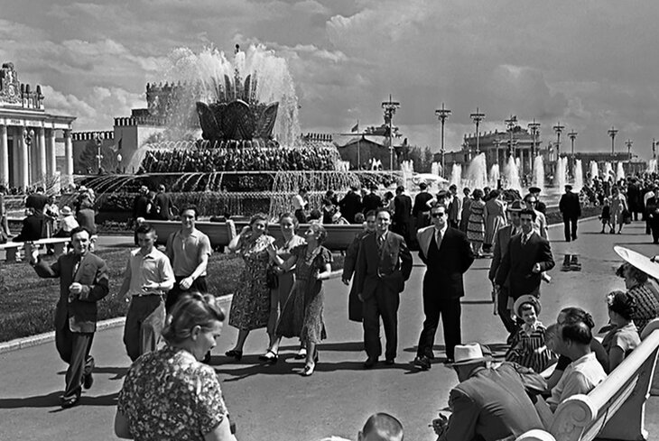 У фонтана «Каменный цветок» на ВСХВ. Фото Н. Грановского. Май 1958 года. Главархив