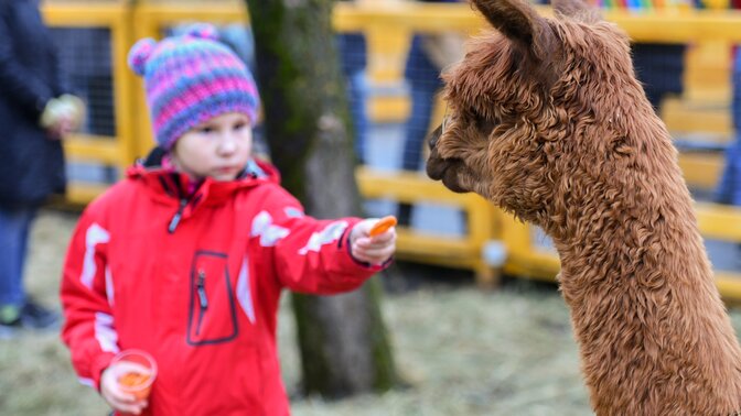 Всем гостям вместе с билетом выдается стаканчик с нарезанной морковью. Перекормить альпака нельзя – они умные и знают меру. Подойдут угоститься только голодные. Морковь для них – диетическое лакомство. От капусты у них вздувает животы, а ежедневный рацион – сено и специальная смесь кормов – полезен, но однообразен.