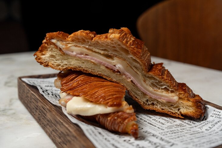 Сэндвичи пробую редко, последние — в Dodgy, было хорошо, удивило качество продуктов. Еще один любимчик — «Сэндвич-бикини» в круассане с ветчиной и сыром в «Мультикультуре». От него невозможно оторваться, вызывает привыкание.