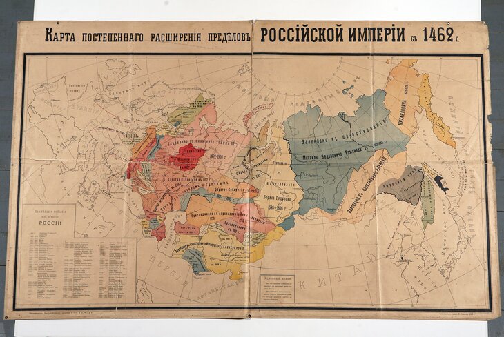 В Коломенском открывается выставка, посвященная расширению русских земель. Центральный экспонат — редкая карта 1908 года, где показано, как с XV века менялись границы государства. Помимо этого, увидите предметы конца XVIII — начала XX столетия: нательный крест, кавказский кинжал, пороховницу и гравюры с изображением казаков.