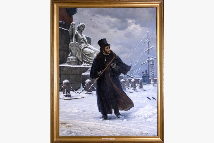 Экспозицию на Арбате задумали как рассказ о том, как формировался художественный образ Пушкина и его времени в культуре XIX–XX веков. И больше всего здесь оказалось работ, связанных с сюжетами книг. В их числе — иллюстрации к «Руслану и Людмиле» и «Бахчисарайскому фонтану», «Медному всаднику» и «Каменному гостю». Их дополняют картины с ключевыми эпизодами жизни писателя, а также полотна Брюллова, Репина и Айвазовского, по которым предлагают изучить историю начала XIX века.